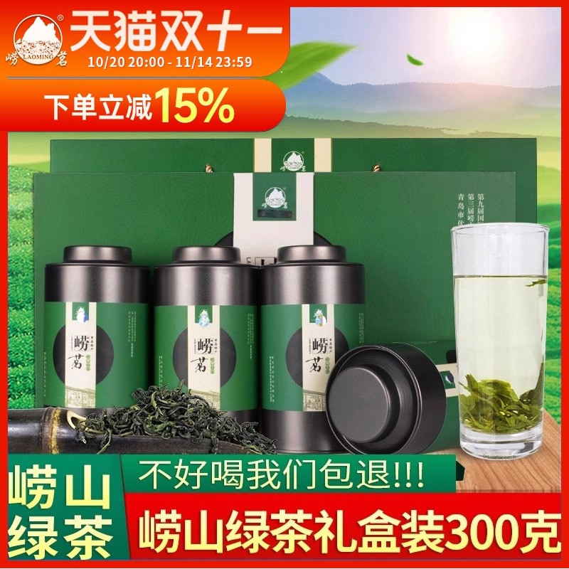 崂茗崂山绿茶礼盒装300g手工2025新茶豆香浓香茶叶山东青岛特产