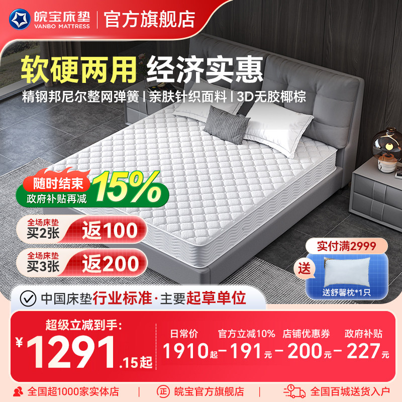 皖宝席梦思床垫1.5m1.8米床椰棕弹簧床垫棕垫软硬定做席梦思老人