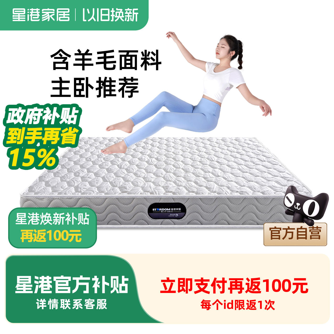 政府补贴悠梦思乳胶弹簧床垫席梦思精细S黄麻1.8米1.5m卧室租房厚