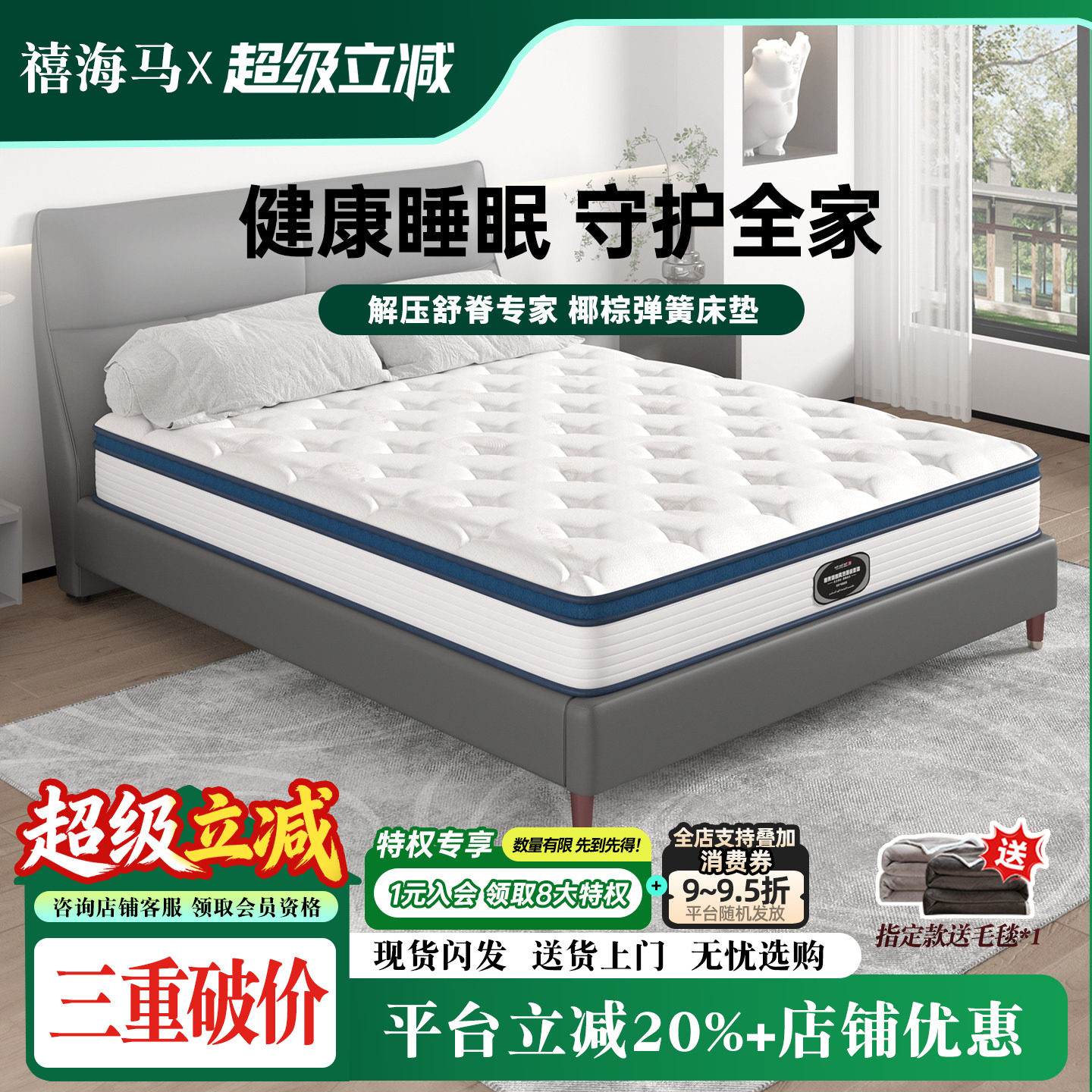 禧海马正品乳胶20厚床垫1.5M 1.8米椰棕独立弹簧软硬两用床垫