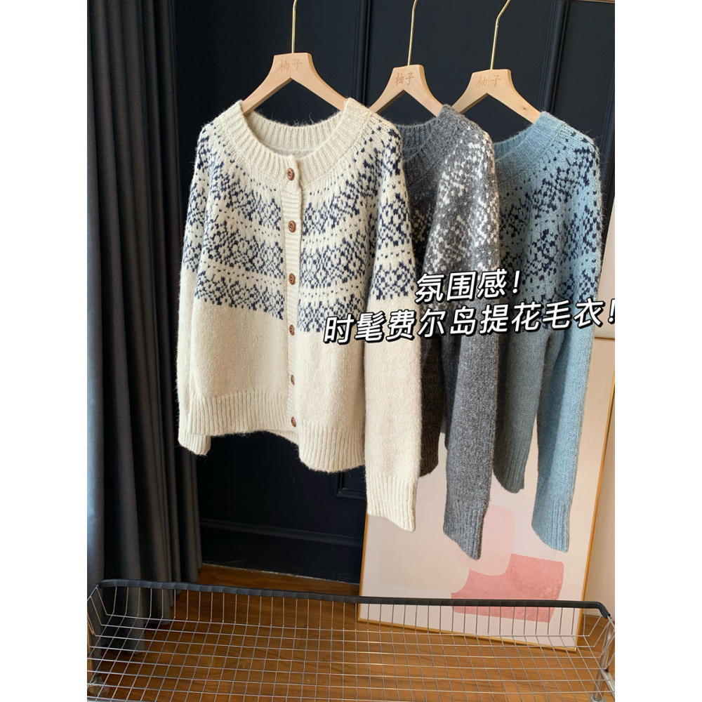 氛围感!时髦费尔岛提花毛衣!显瘦慵懒开衫针织衫外套女25新款冬