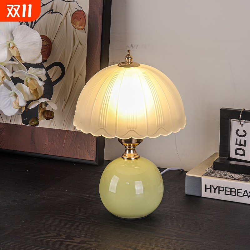水母台灯高级感中古浪漫奶油氛围灯卧室床头灯小夜灯客厅陶瓷遥控
