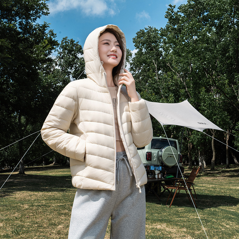 - 薄羽绒服女连帽短款