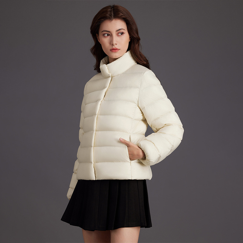 2025秋冬新款女士轻薄白鹅绒服女性韩版立领无帽短款超轻便羽绒衣