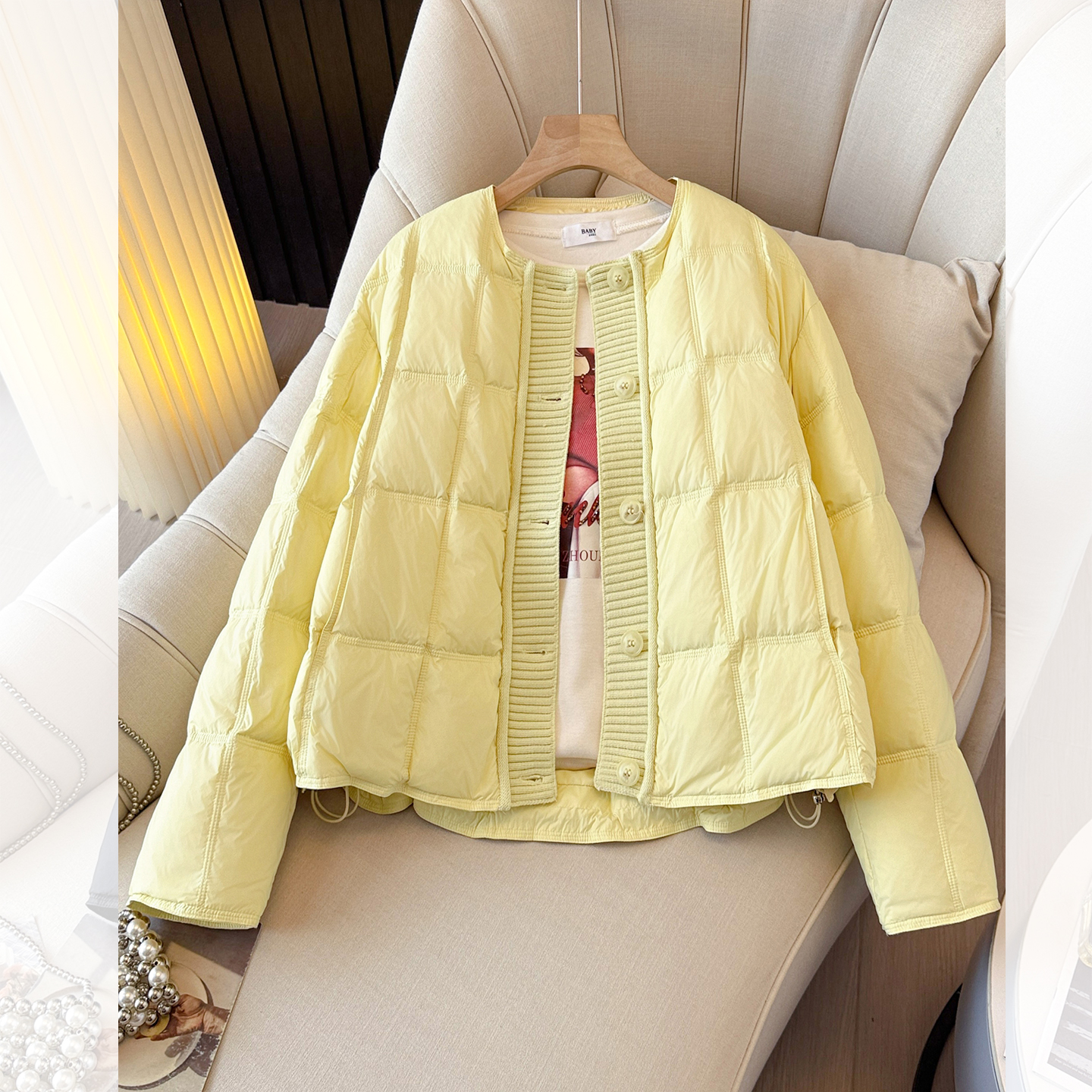 超好看的黄色轻薄无领羽绒服女士2025冬季新款短款小个子圆领外套