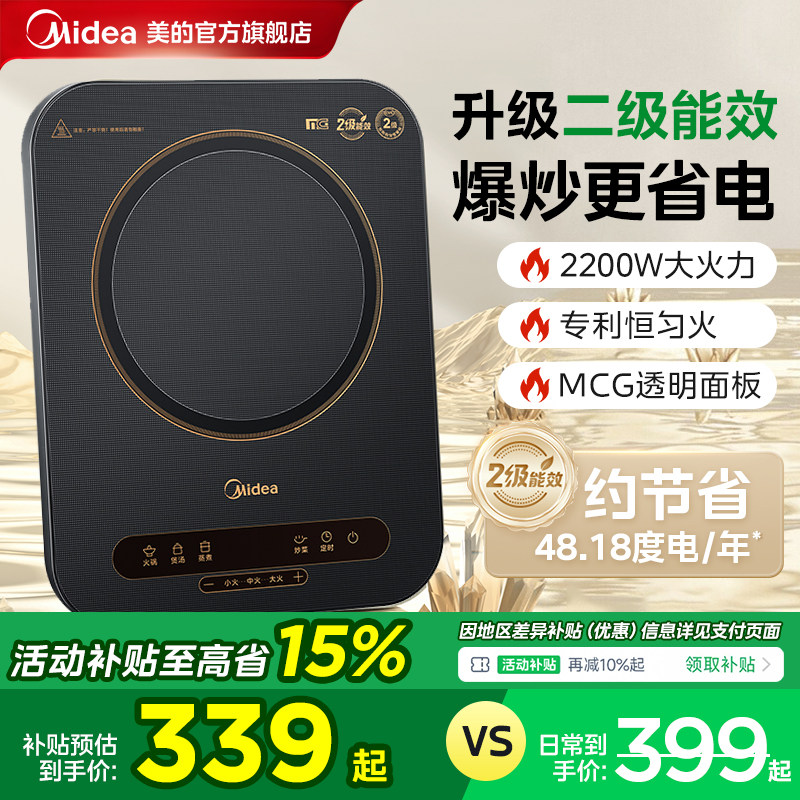 美的电磁炉家用爆炒火锅一体小型电磁灶二级能效正品官方旗舰新款