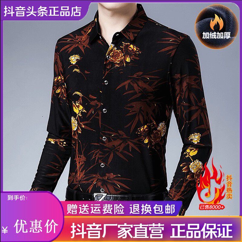 - 男加绒花衬衫