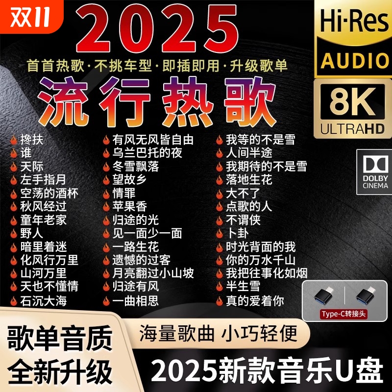 汽车载u盘歌曲2025新款热歌网红流行经典音乐无损音源车用U优盘dj