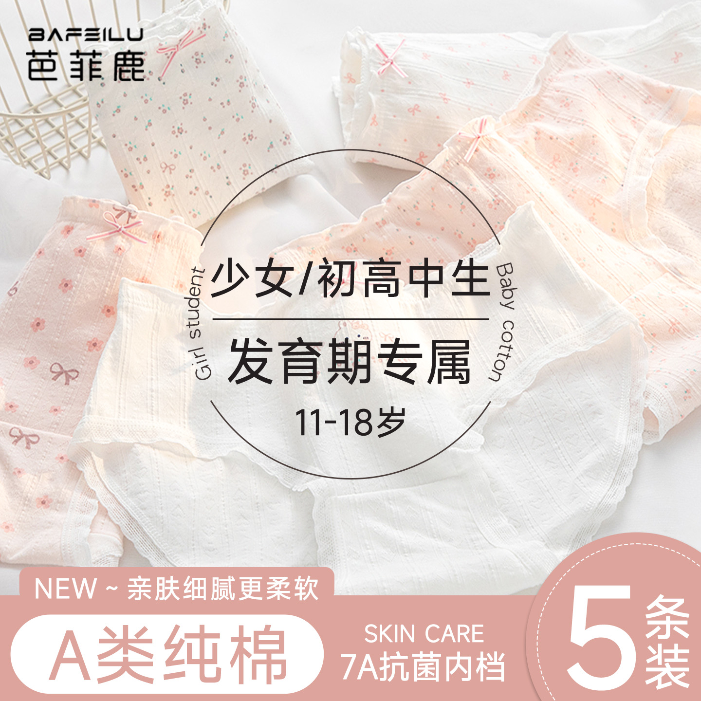芬腾纯棉少女内裤女生2025新款全棉抑菌裆无痕初中学生女童三角裤