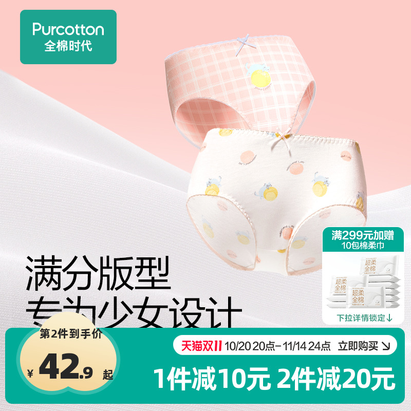 全棉时代女童内裤纯棉中腰透气学生可爱青少年高中生少女内裤 2条