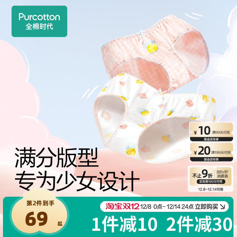 帕兰朵发育期少女生内裤纯棉全棉抗菌大童青春期初高中学生三角裤