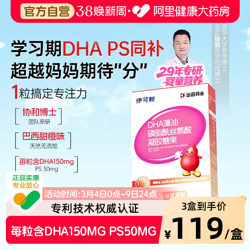 伊可新DHA藻油PS学习期同补巴西甜橙味儿童青少年专注力凝胶糖果