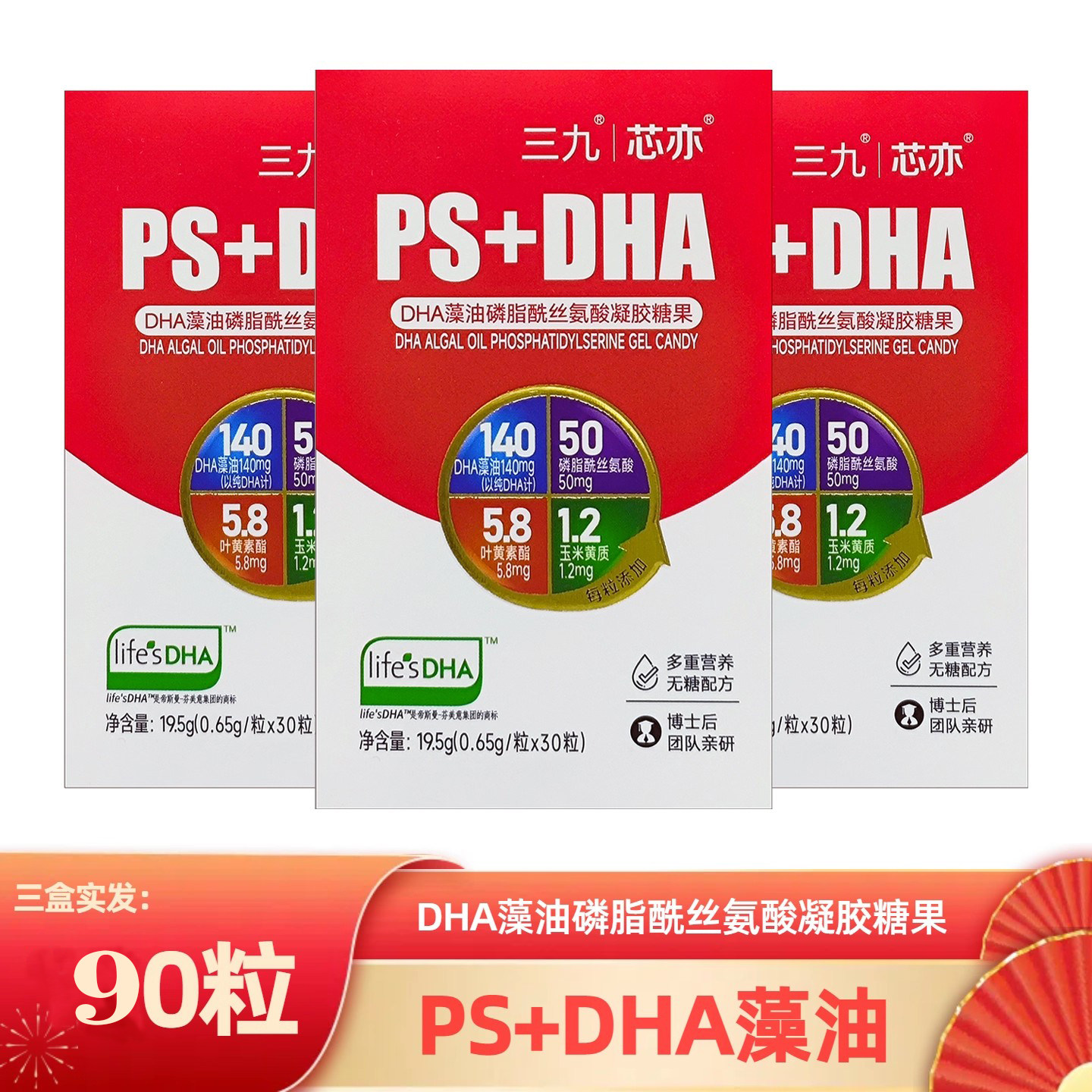 正品三九芯亦学龄期高强度学习DHA藻油PS磷脂酰丝氨酸凝胶30粒/瓶