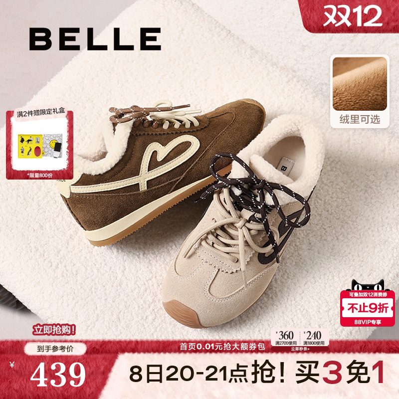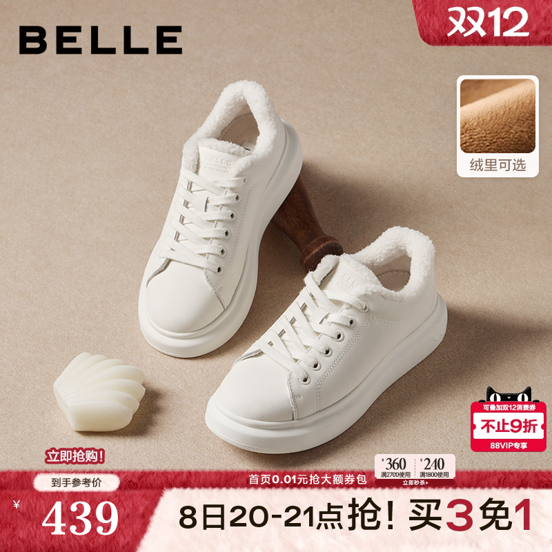 百丽女鞋厚底小白鞋加绒冬新款增高鞋棉鞋运动休闲板鞋D5Q1DAM5