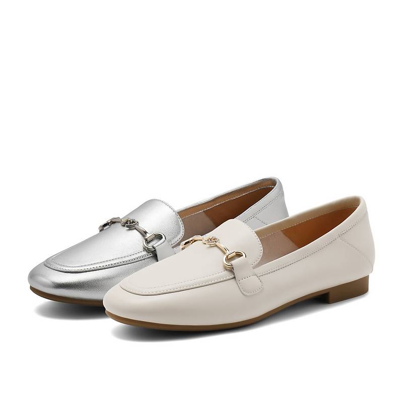 Belle女鞋子通勤小皮鞋24新款豆豆鞋真皮单鞋复古乐福鞋B7B1DCA4