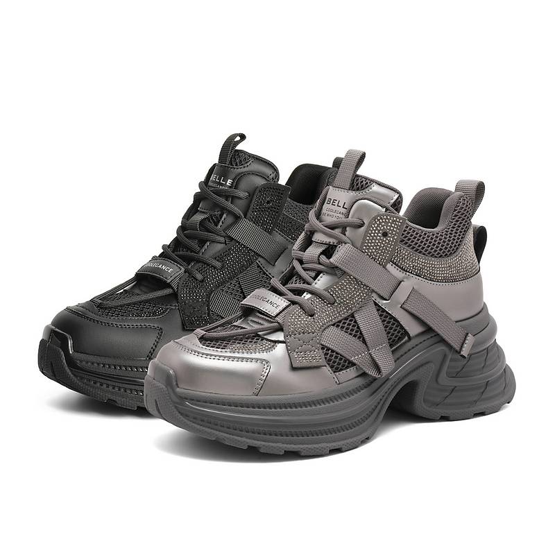 百丽Belle女鞋子厚底高帮银色老爹鞋24冬季休闲运动鞋C1M3DDM4