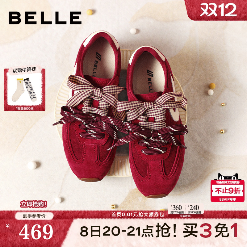 百丽女鞋子复古红色德训鞋阿甘鞋新款内增高商场休闲鞋F1P1DAM6预