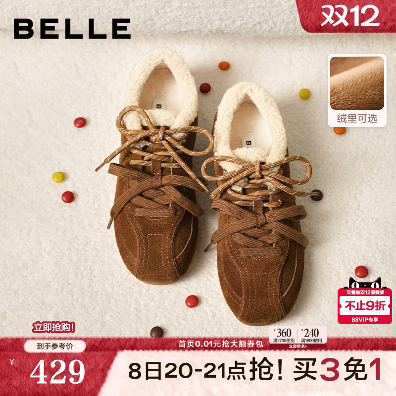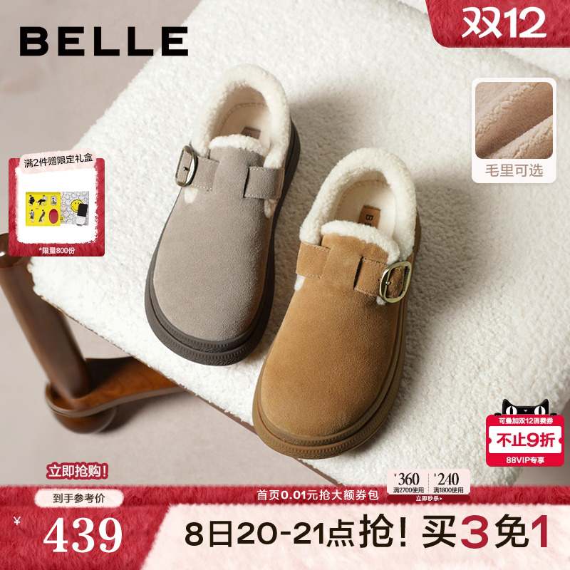百丽Belle女鞋子24冬全麦吐司勃肯鞋加绒毛毛棉鞋雪地靴B2258DM4