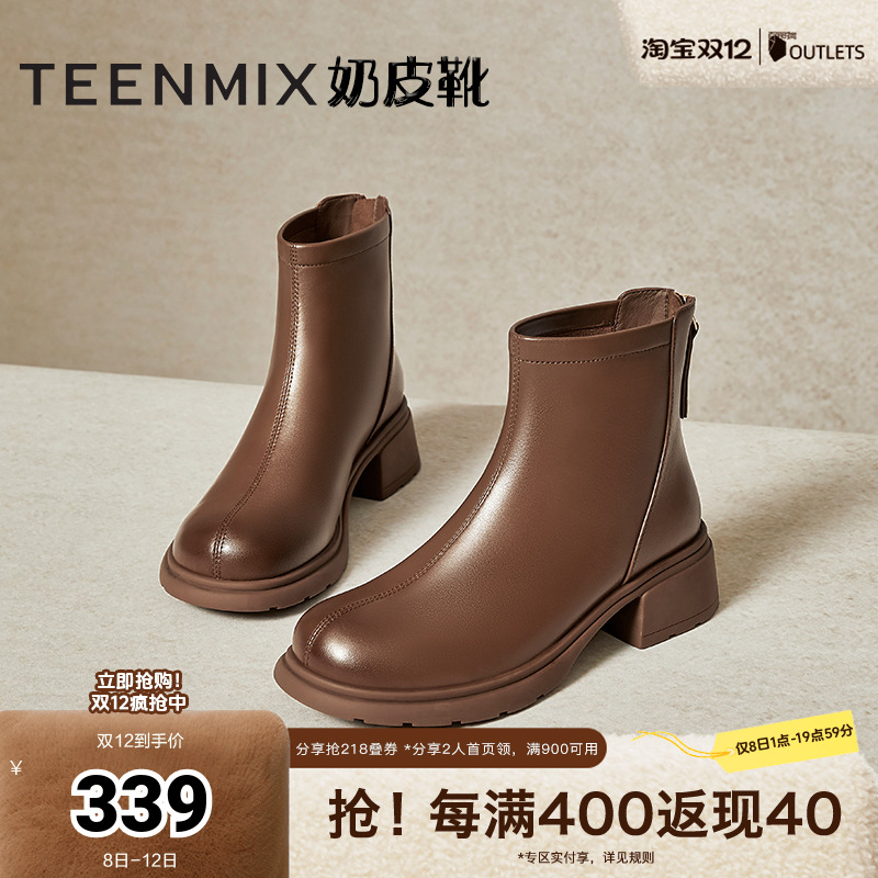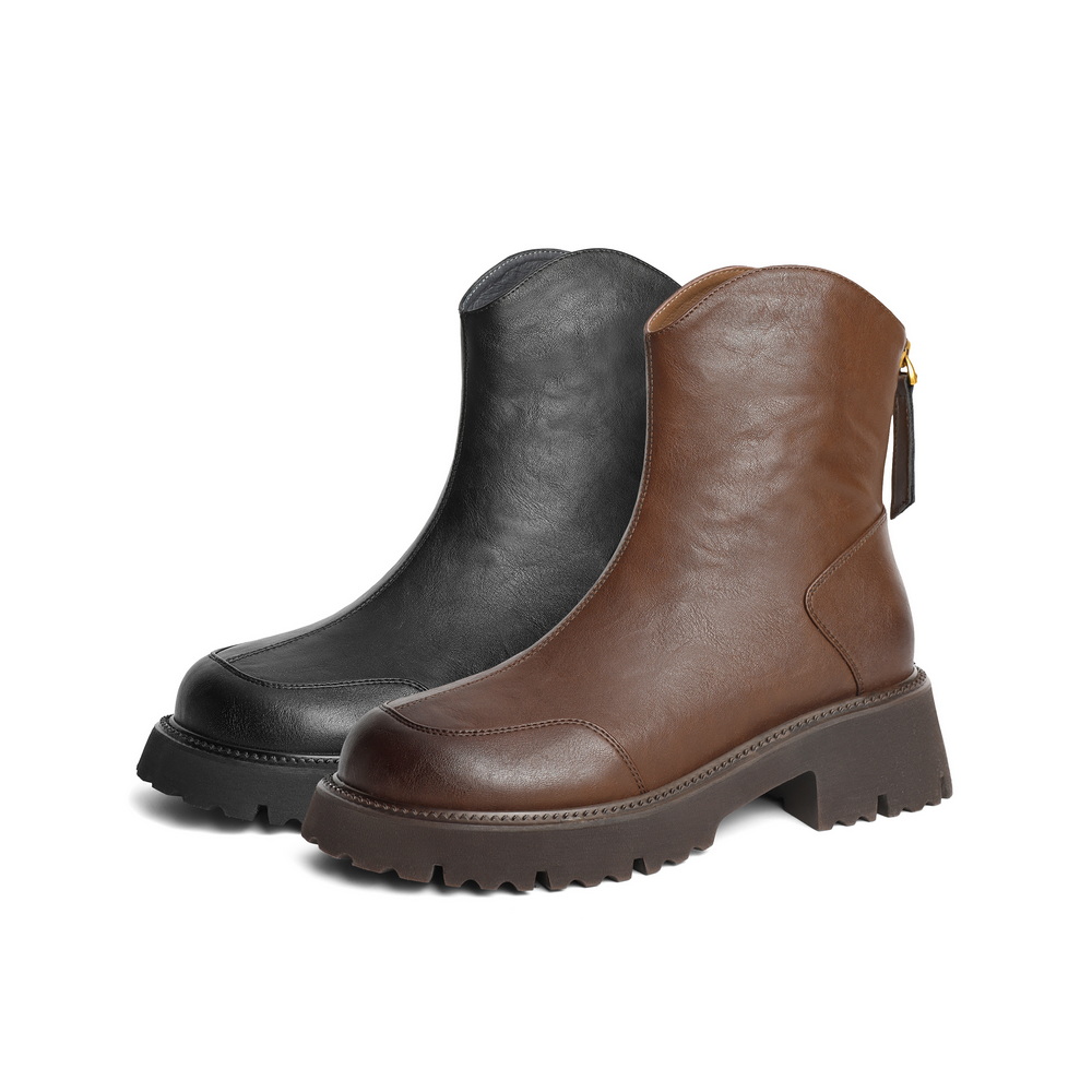 天美意厚底英伦切尔西奶皮靴女鞋复古短靴皮靴冬新款KYP01DD4