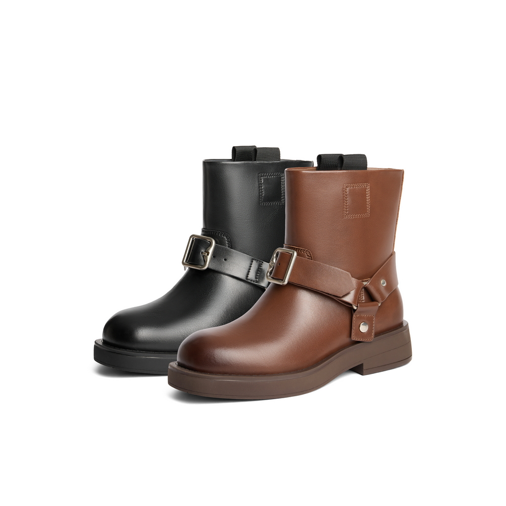 百丽Belle女鞋子24冬季休闲短筒马丁靴复古短靴西部靴B2170DZ4