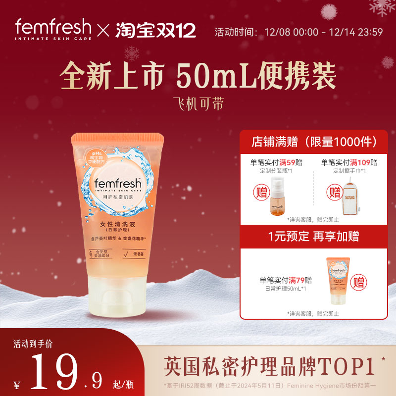 【新装上市】英国femfresh芳芯女性私处洗护液日常护理便携装50ml