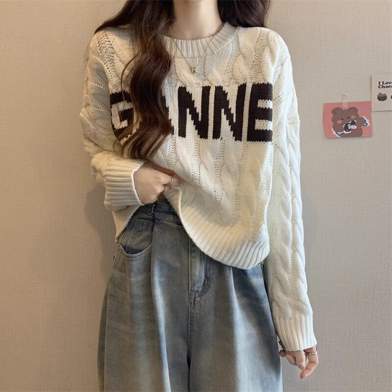 字母毛衣女式春秋冬2025新款大码韩式慵懒式针织底衫短袖长袖上衣