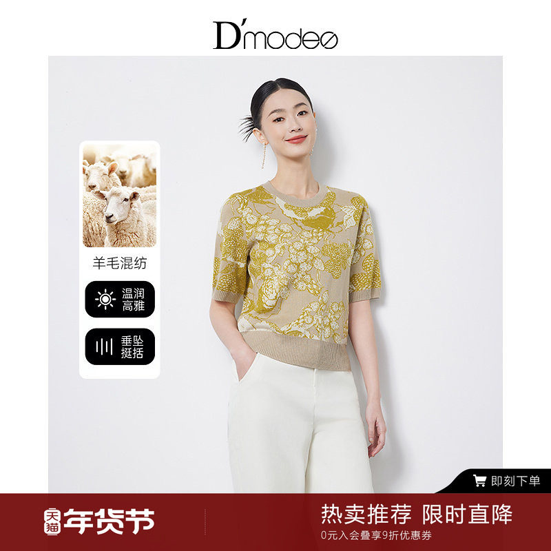 保罗彼得2025年春夏新款女士短袖针织衫桑蚕丝套头毛衫MLDB41051