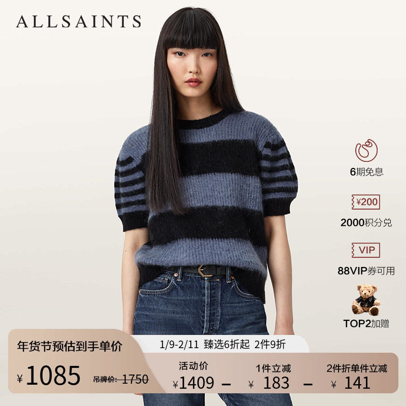 ALLSAINTS女士短袖条纹毛衣马海毛混纺针织2025年秋季新款W015KD
