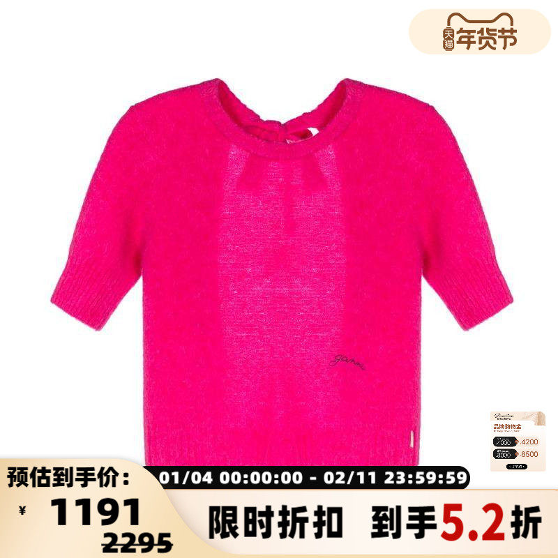 GANNI 秋冬女士玫红色圆领短袖针织毛衣银泰百货精品 301574