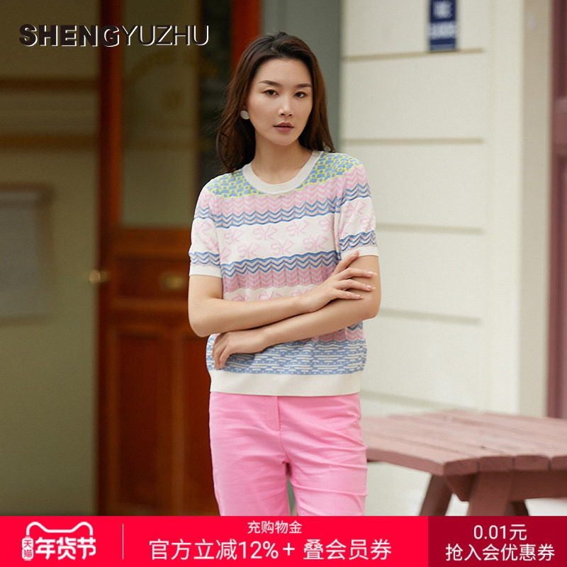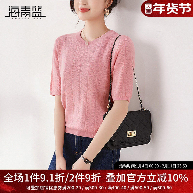 声雨竹官方旗舰店2024年夏季新款针织衫女士短袖套头纯色毛衣上衣