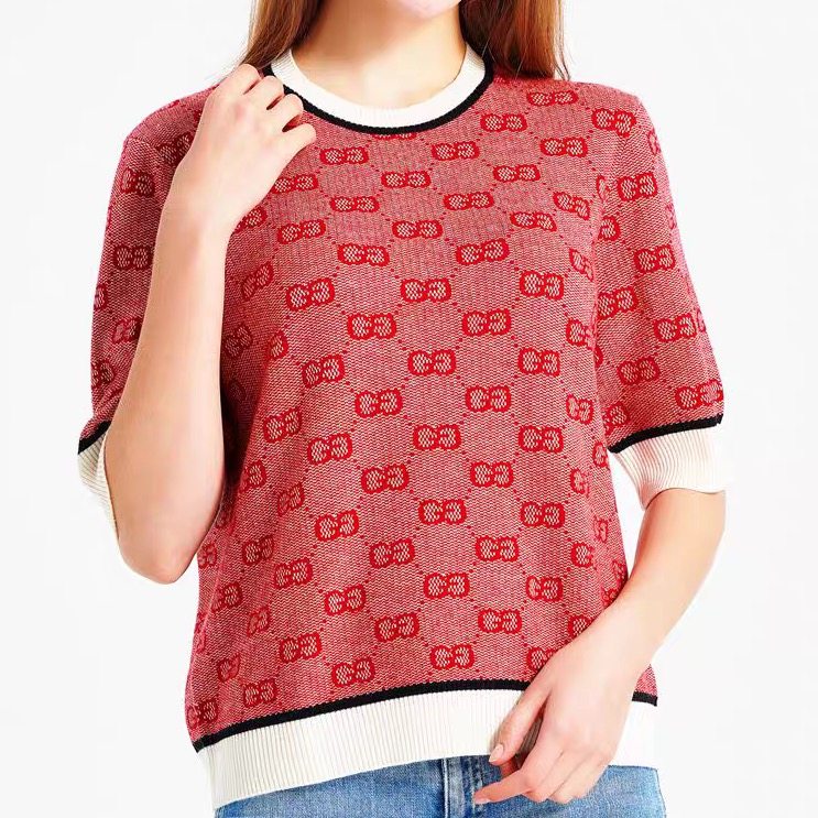 换季清仓短袖女士圆领背心套衫百搭轻奢毛衣G家针织T恤大码可定制