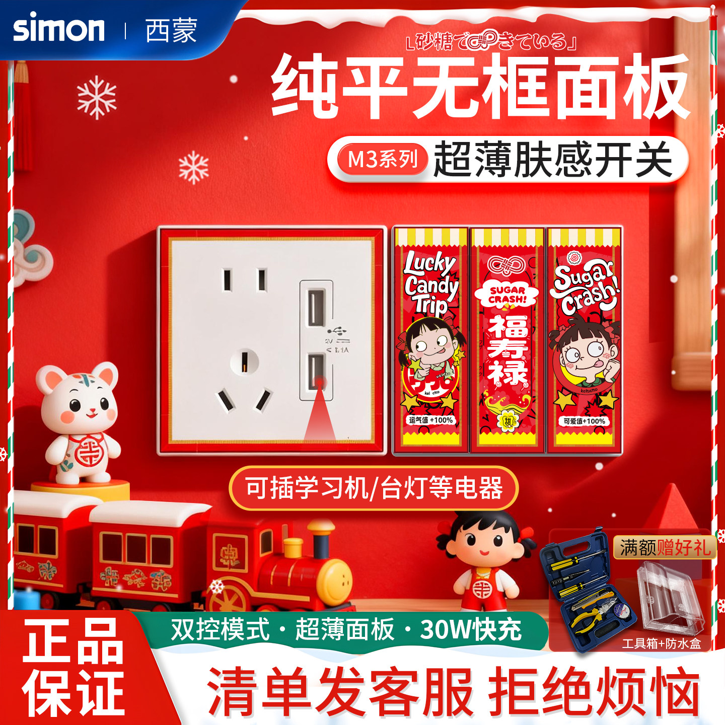 西蒙开关插座M6彩色樱花粉儿童个性房可爱官方旗舰店官网五孔面板