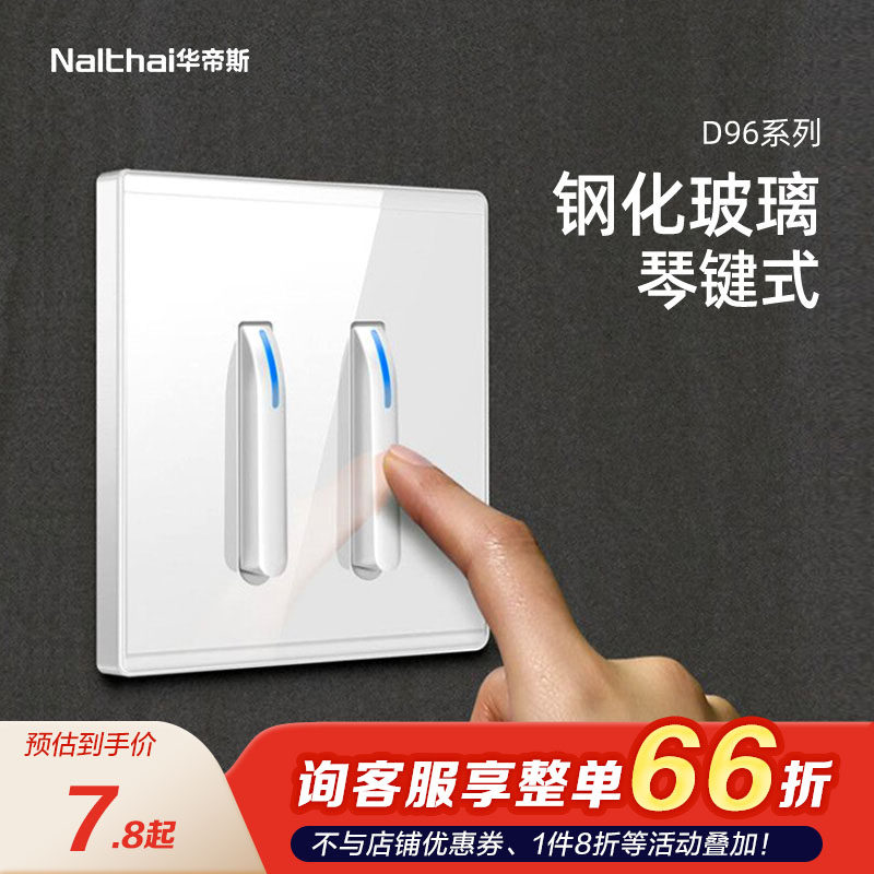 Nalthai华帝斯琴键个性开关插座86型家用钢化玻璃面板民宿风设计