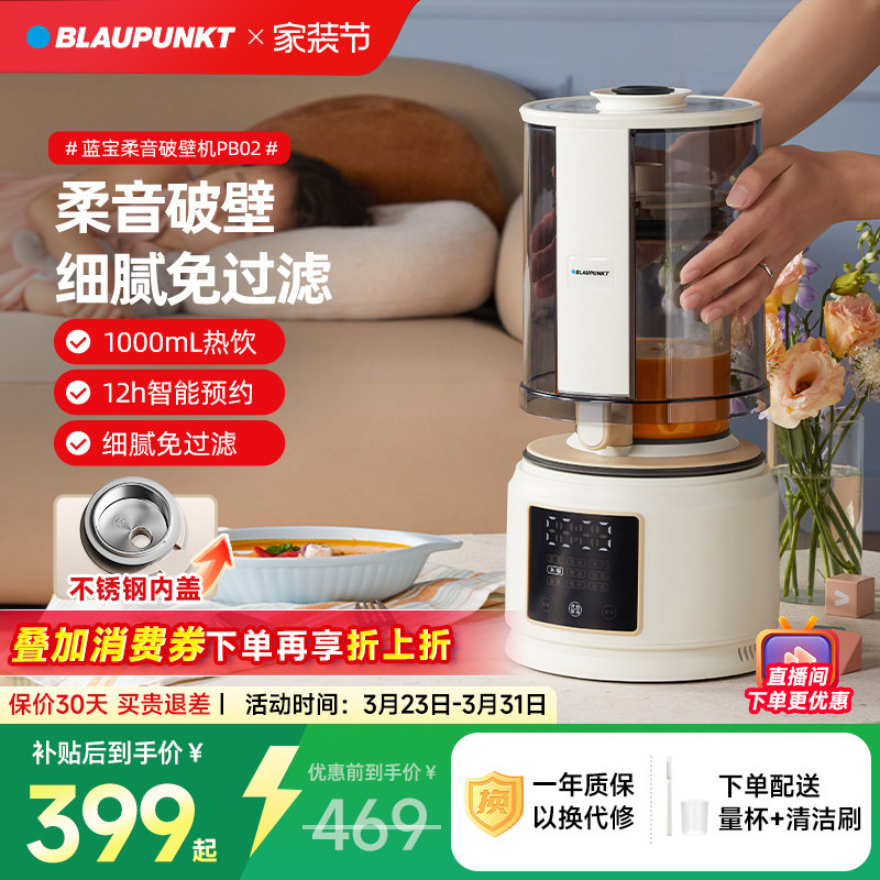 德国蓝宝柔音静破壁机家用全自动新款料理五谷豆浆辅食榨汁机PB02