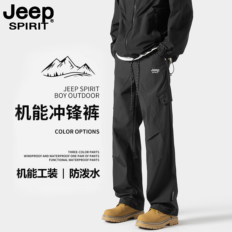 JEEP 吉普三防冲锋裤男款户外防风防水夏季男裤工装裤宽松登山裤