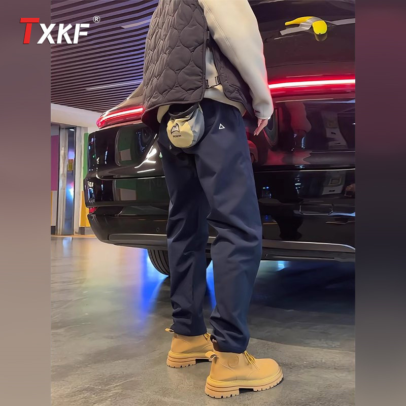 男士秋冬新款加绒加厚防风保暖冲锋裤宽松直筒户外休闲工装裤男裤