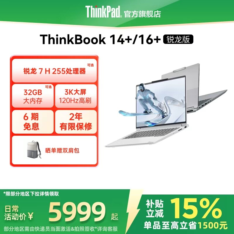 ThinkPad 联想 ThinkBook14+/16+ 锐龙版 14.5/16英寸商务办公便携手提轻薄本笔记本电脑百亿补贴