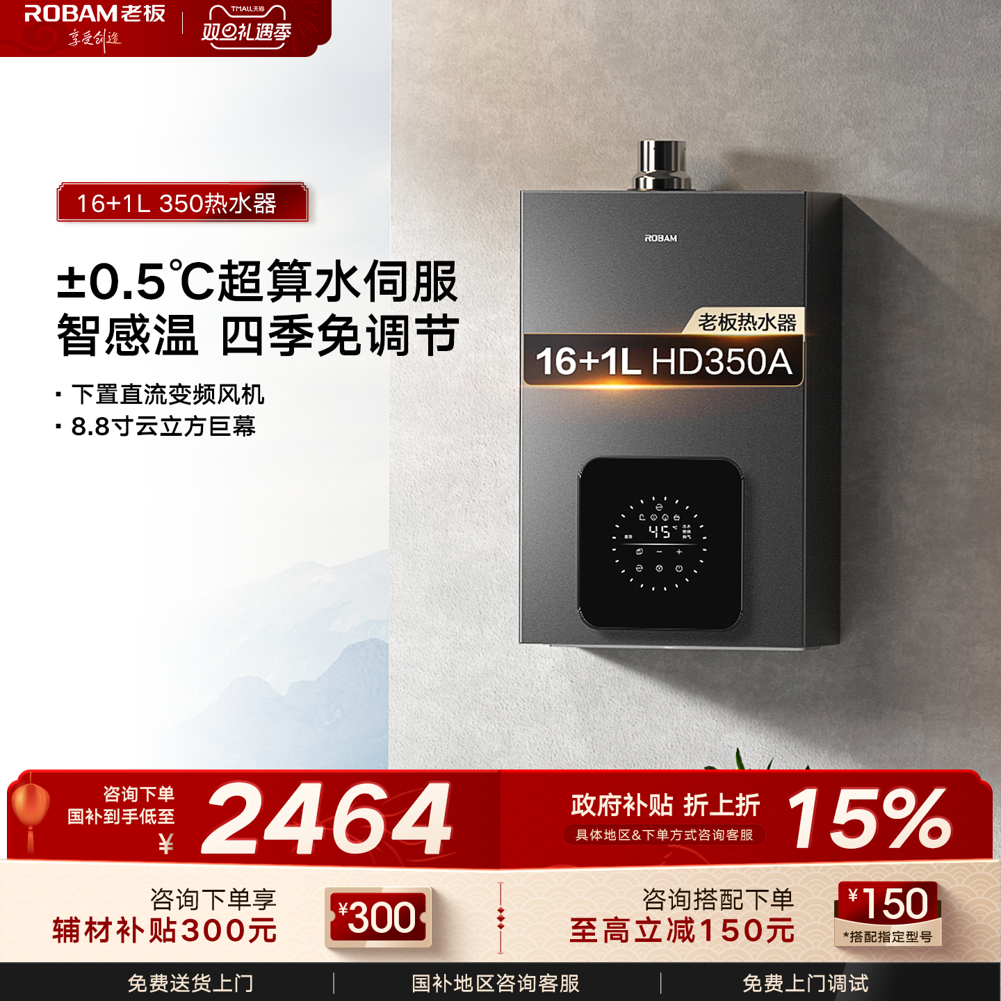 Robam老板小云朵350-16L家用恒温燃气热水器天然气热水器官方旗舰