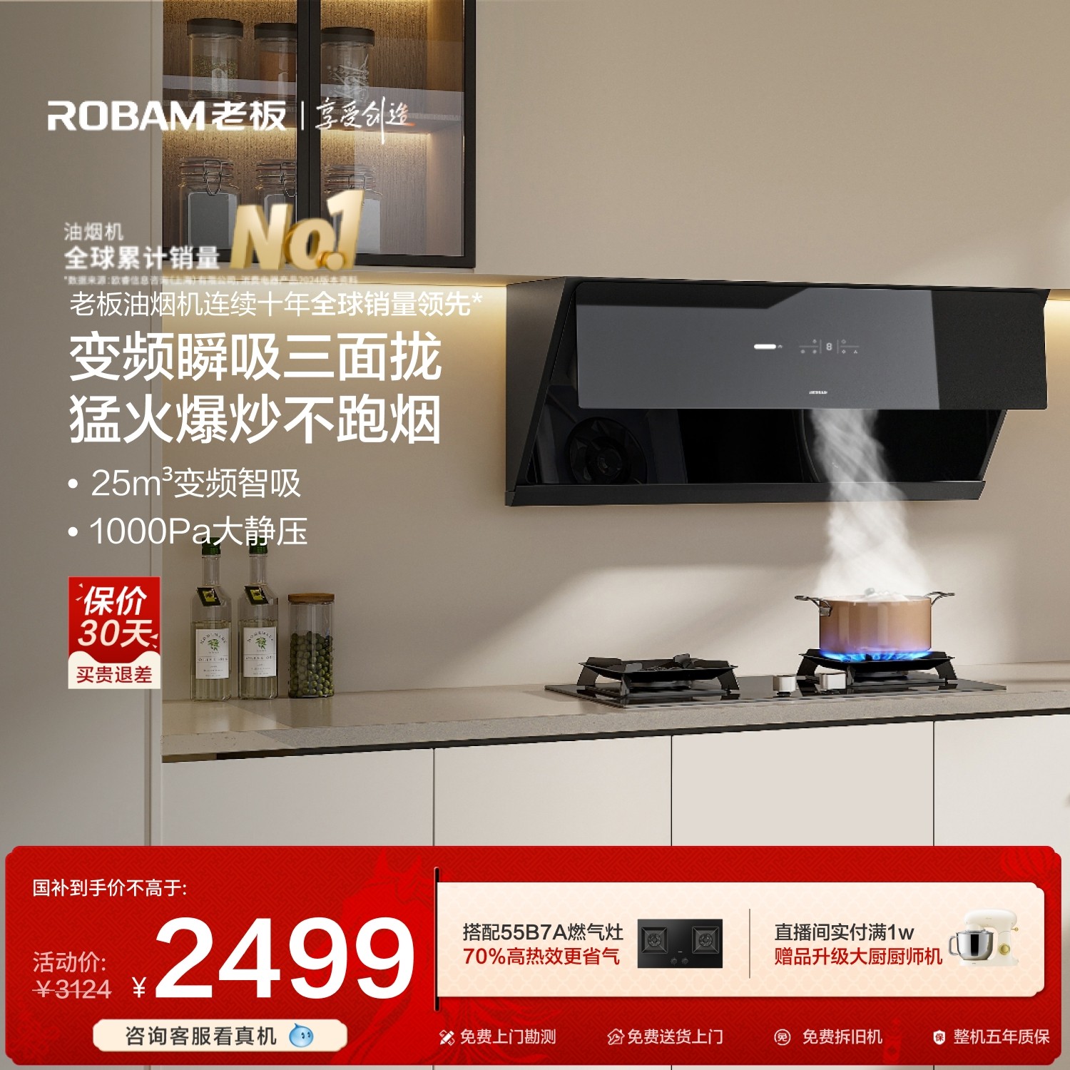 老板抽油烟机26风量家用变频超薄齐平橱柜56K3S烟灶套装顶侧一体