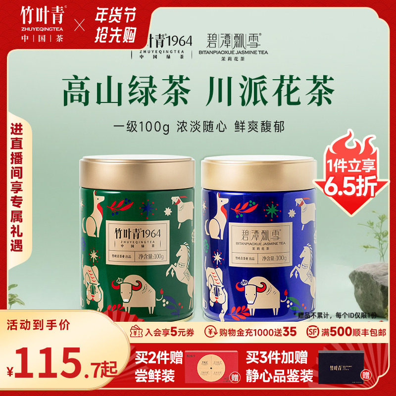 组合2罐】竹叶青绿茶红茶花茶茶叶2025新茶一级罐装100g*2自己喝