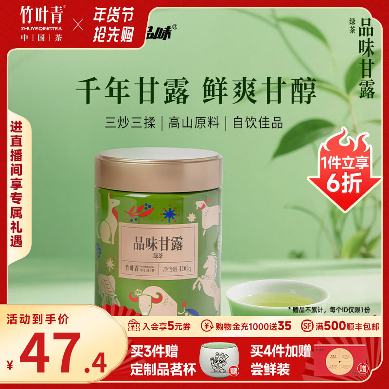 竹叶青品味牌茶叶一级绿茶品味甘露峨眉高山罐装100g自己喝口粮茶