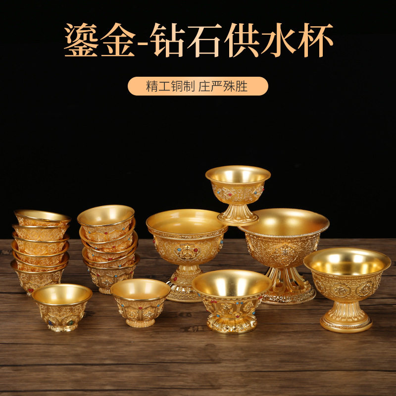 藏式供杯供碗合金鎏金钻石家用圣水杯七供八供杯密宗八吉祥供水杯