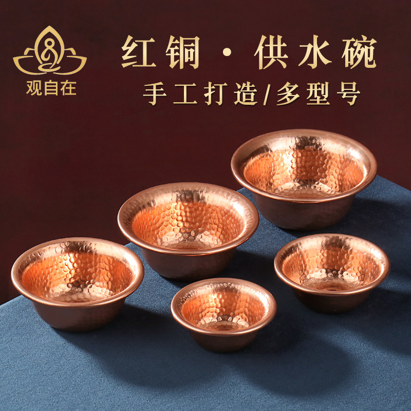 红铜手工敲打供水杯佛堂家用光面压花供水碗七供八供大口径供佛杯
