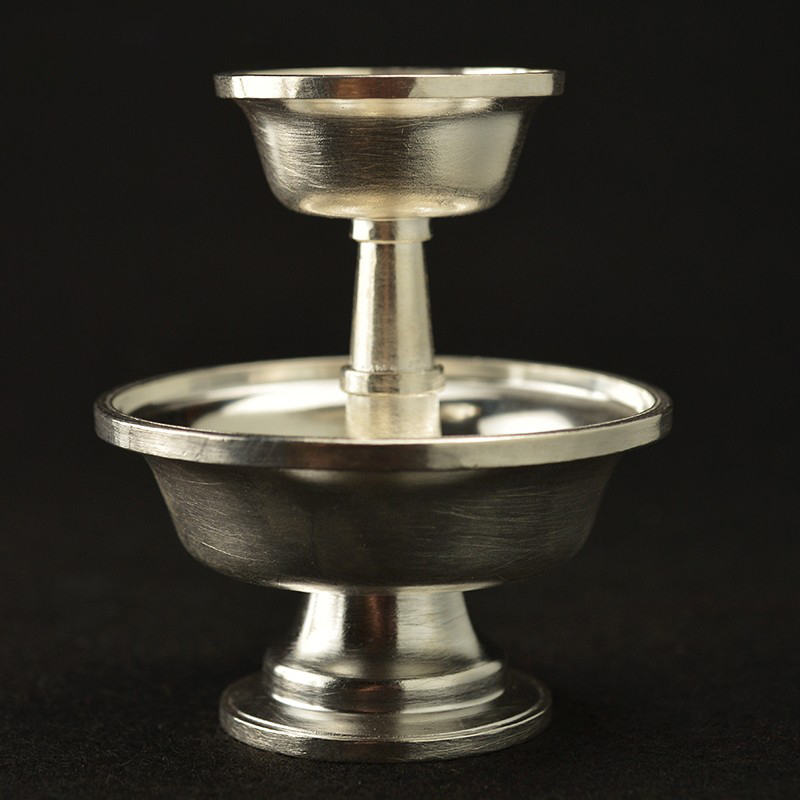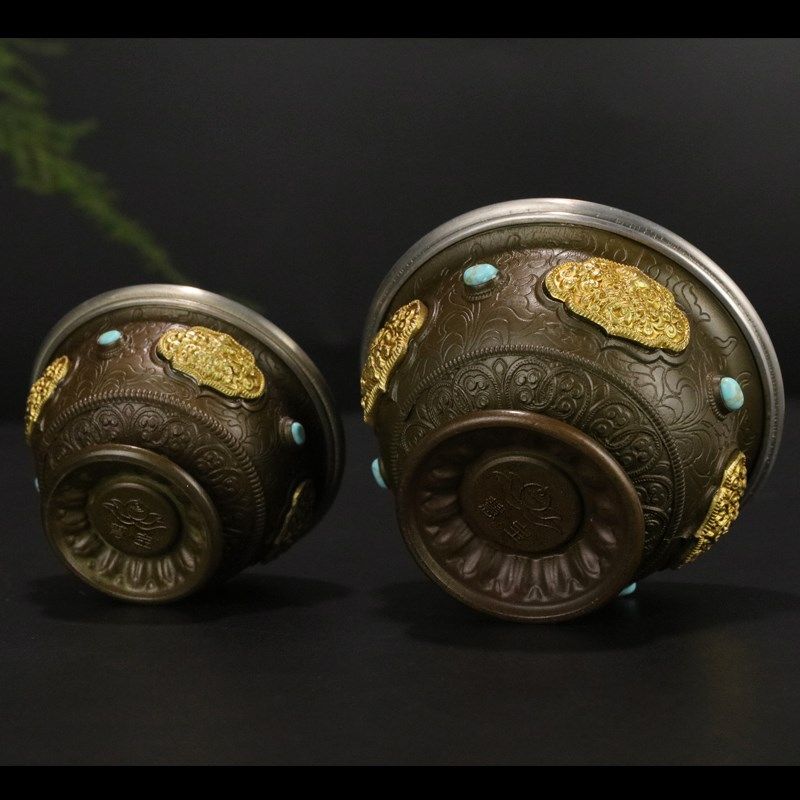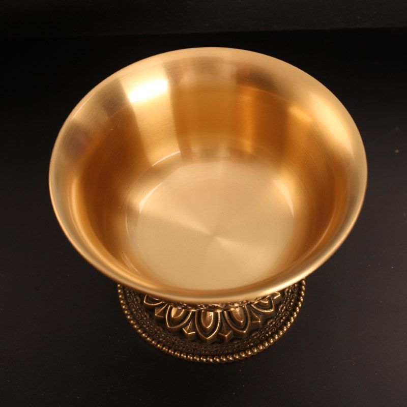 藏式供水杯尼泊尔青铜八供杯光面丝供水碗家用室内佛堂平脚底摆件