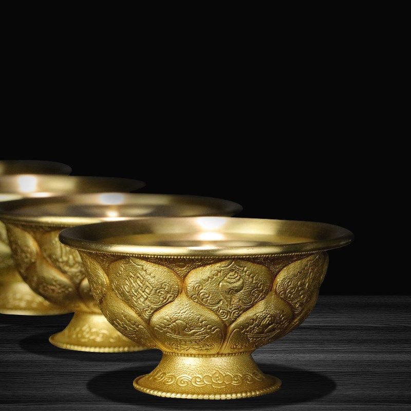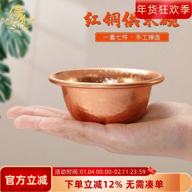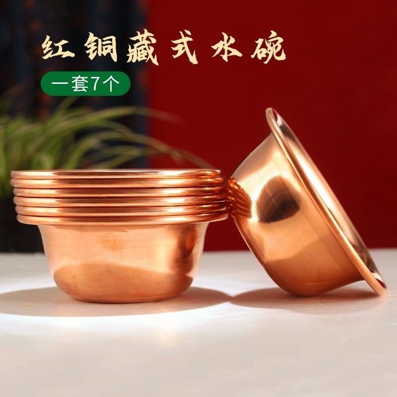 极速藏式供水杯红铜供奉杯八供杯格桑花供水O碗室内佛堂白铜包平
