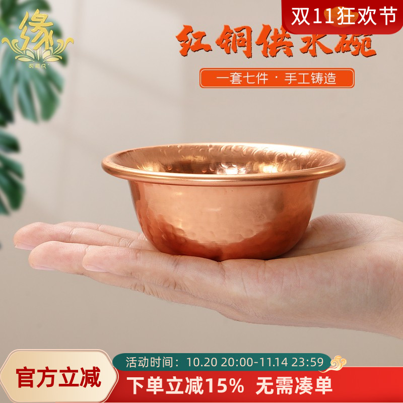 西行人 紫铜供水碗七个一套供佛杯八供杯佛堂桌面摆件净水杯禅意
