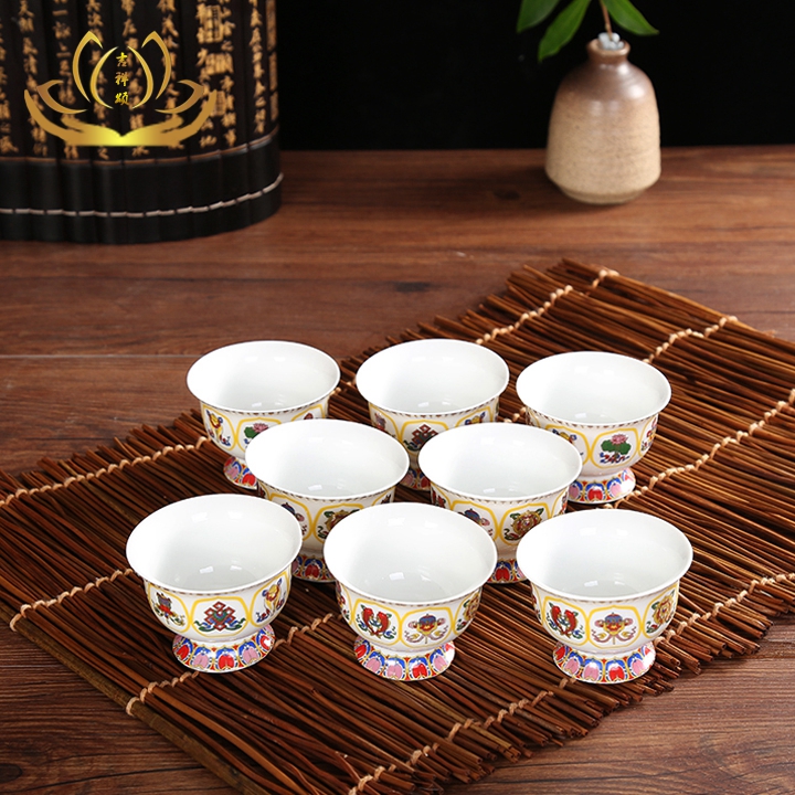 陶瓷八吉祥供杯 水碗 供水杯八宝供碗七供八供杯供水杯密宗供水碗