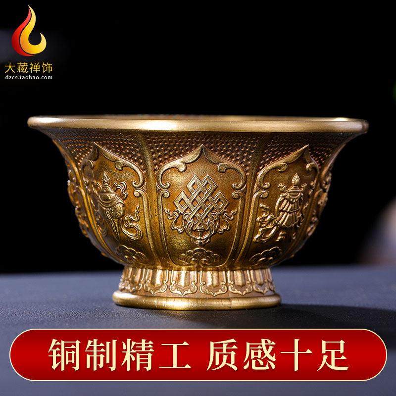 藏式供水杯黄铜供奉杯八供杯八吉祥供水碗室内佛堂供奉圣水杯摆件