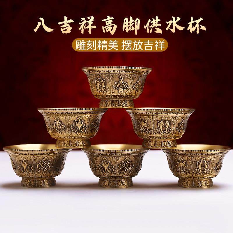 藏式精品黄铜八吉祥护法杯密宗供佛用品圣水供水杯佛前供杯大小号