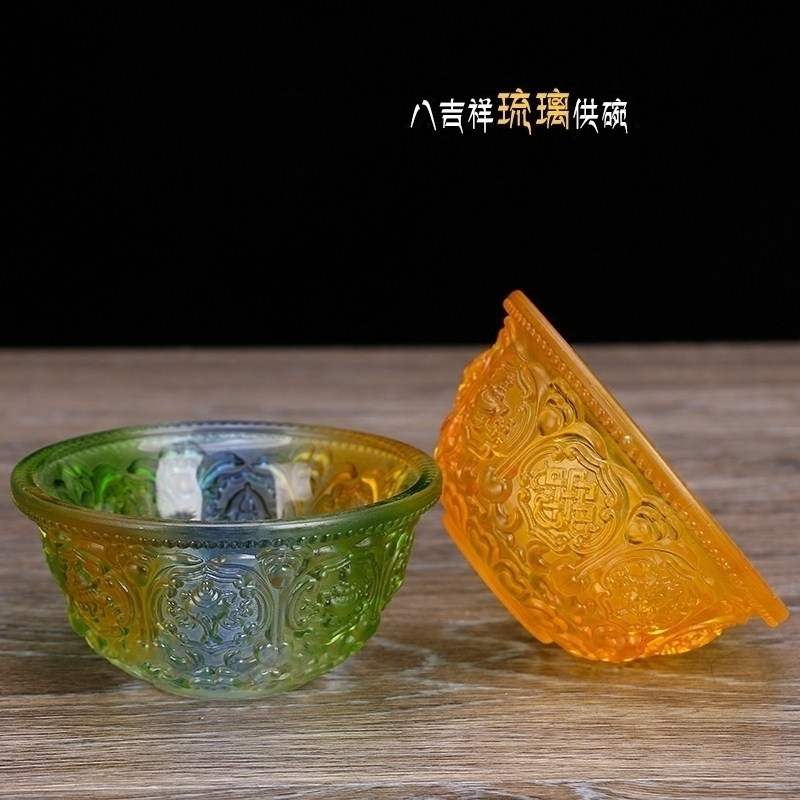 圆通佛具用品琉璃供碗家用供佛碗八吉祥净水圣水杯西藏密宗八供杯